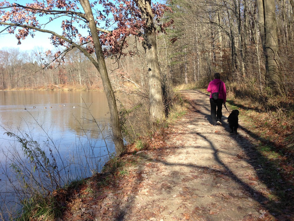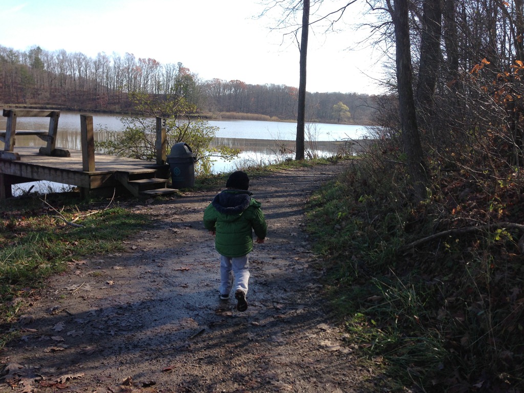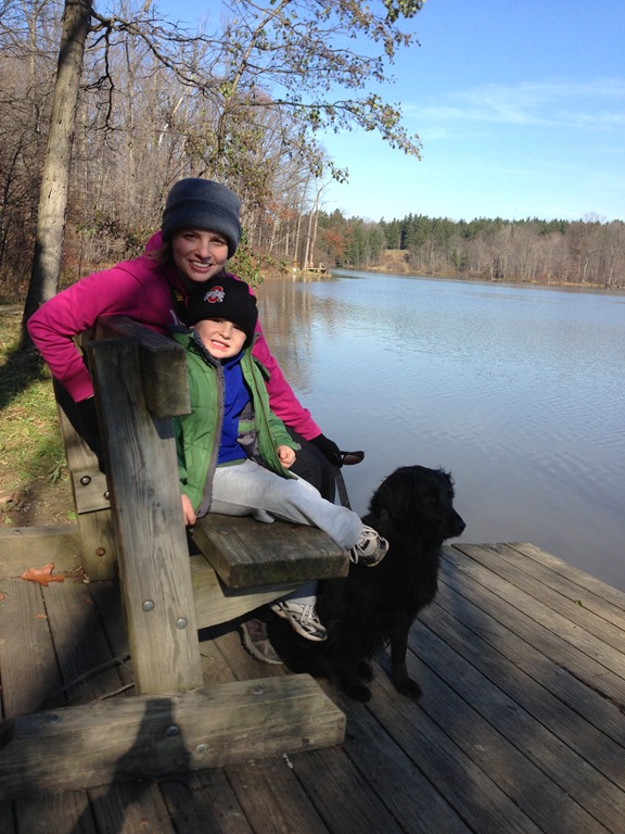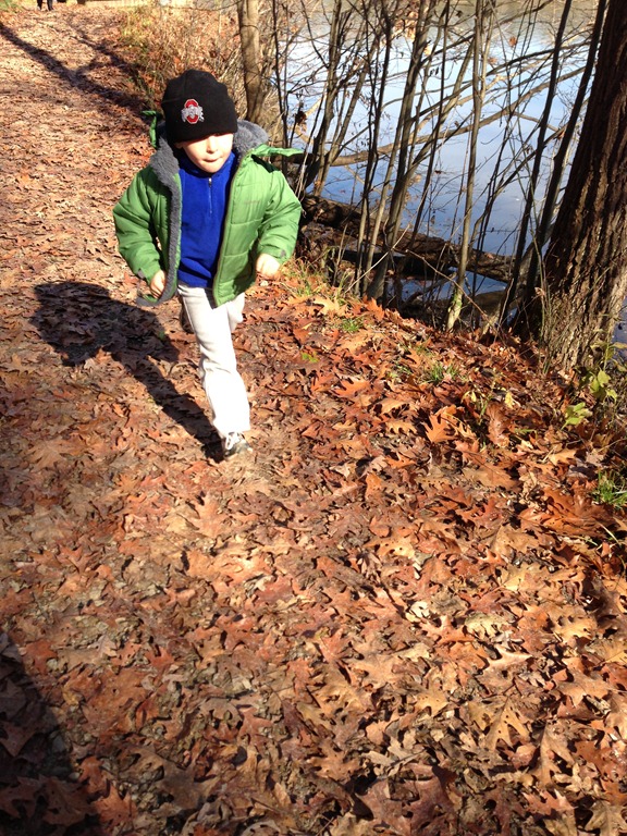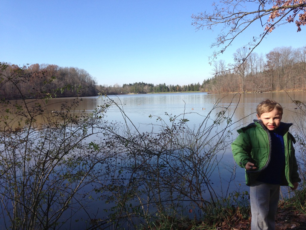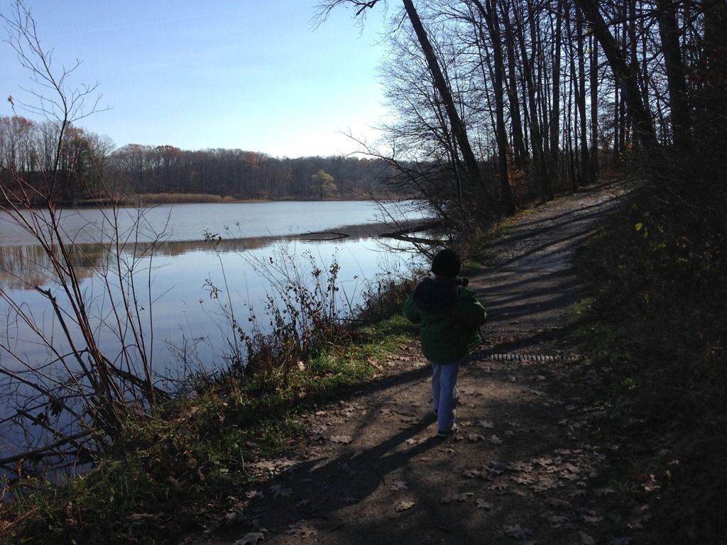 The morning passed with some leaf-raking and yard clean-up, as well as a bit of quiet and leisure. After left-overs we headed to Hinckley Lake to enjoy a long walk and some half-way snacks that we obtained from the boat house mid-way point. The boy jumped and ran and bounced his way along while we towed the dog with us. Everyone had a very good time.