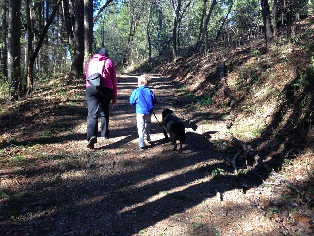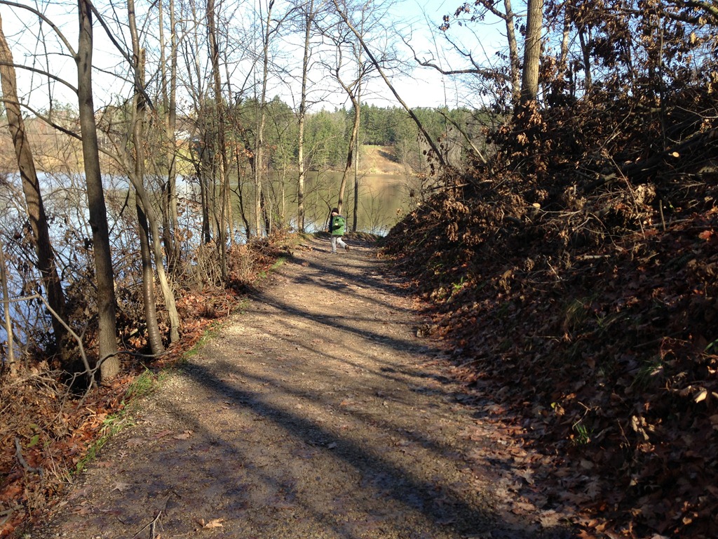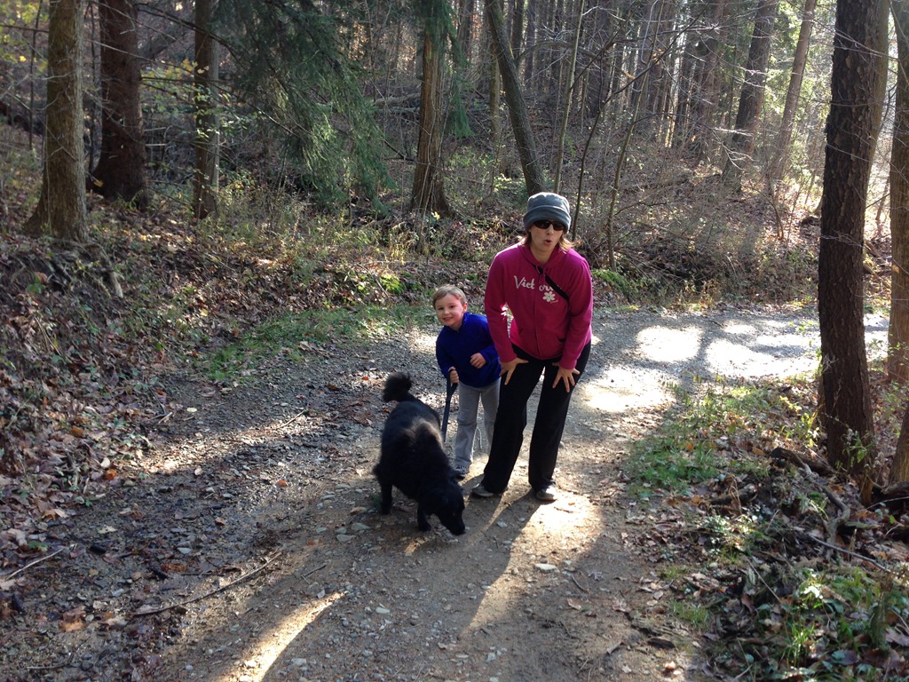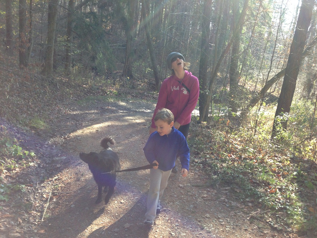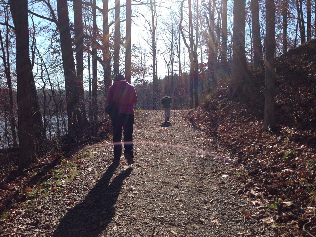 The morning passed with some leaf-raking and yard clean-up, as well as a bit of quiet and leisure. After left-overs we headed to Hinckley Lake to enjoy a long walk and some half-way snacks that we obtained from the boat house mid-way point. The boy jumped and ran and bounced his way along while we towed the dog with us. Everyone had a very good time.
