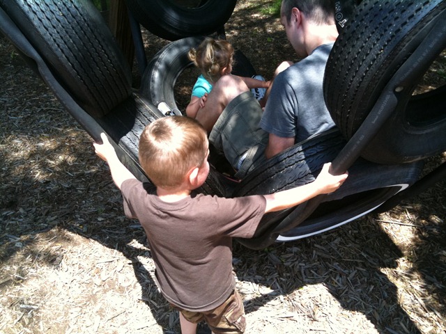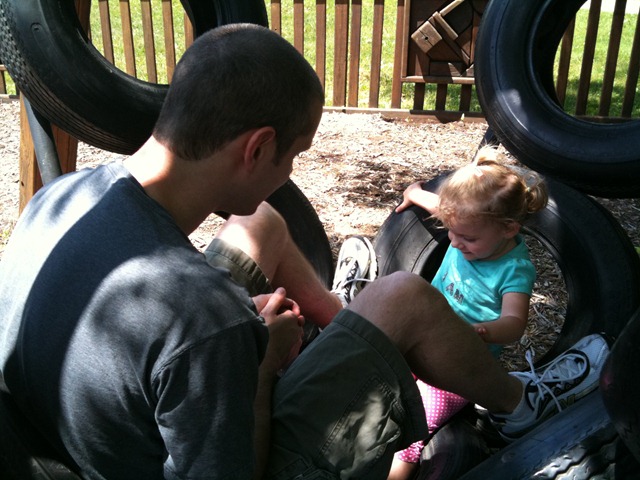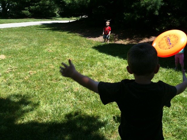 I know Little A. isn’t watching, but Daniel is attempting to throw him the Frisbee.